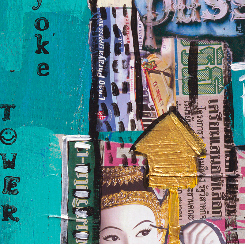 Original-Collage in Mischtechnik / Acrylfarbe / Pastellkreide auf Künstler-Leinwand