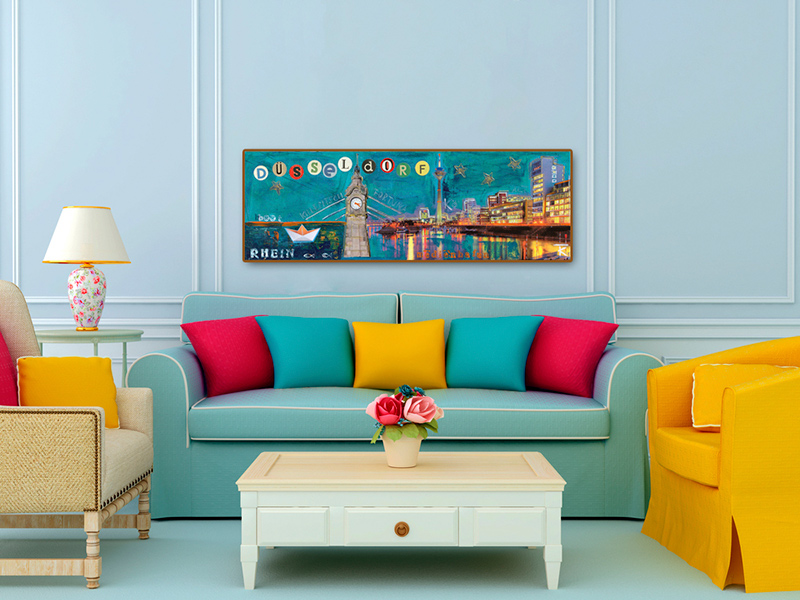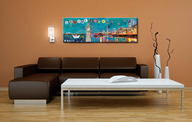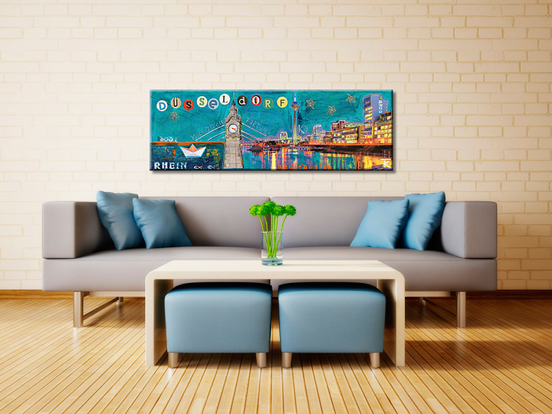 hochwertige Künstler-Baumwoll-Leinwand auf nahezu verzugsfreien Galerie-Holzkeilrahmen gespannt, rückseitig geklammert