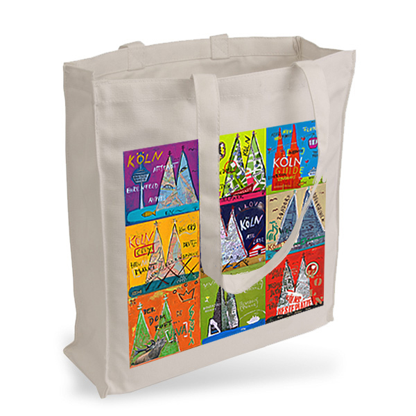 robuste Jute-Tasche aus 100% Baumwolle (340g/qm) mit Boden- und Seitenfalte (38 x 42 cm) und langen Henkeln