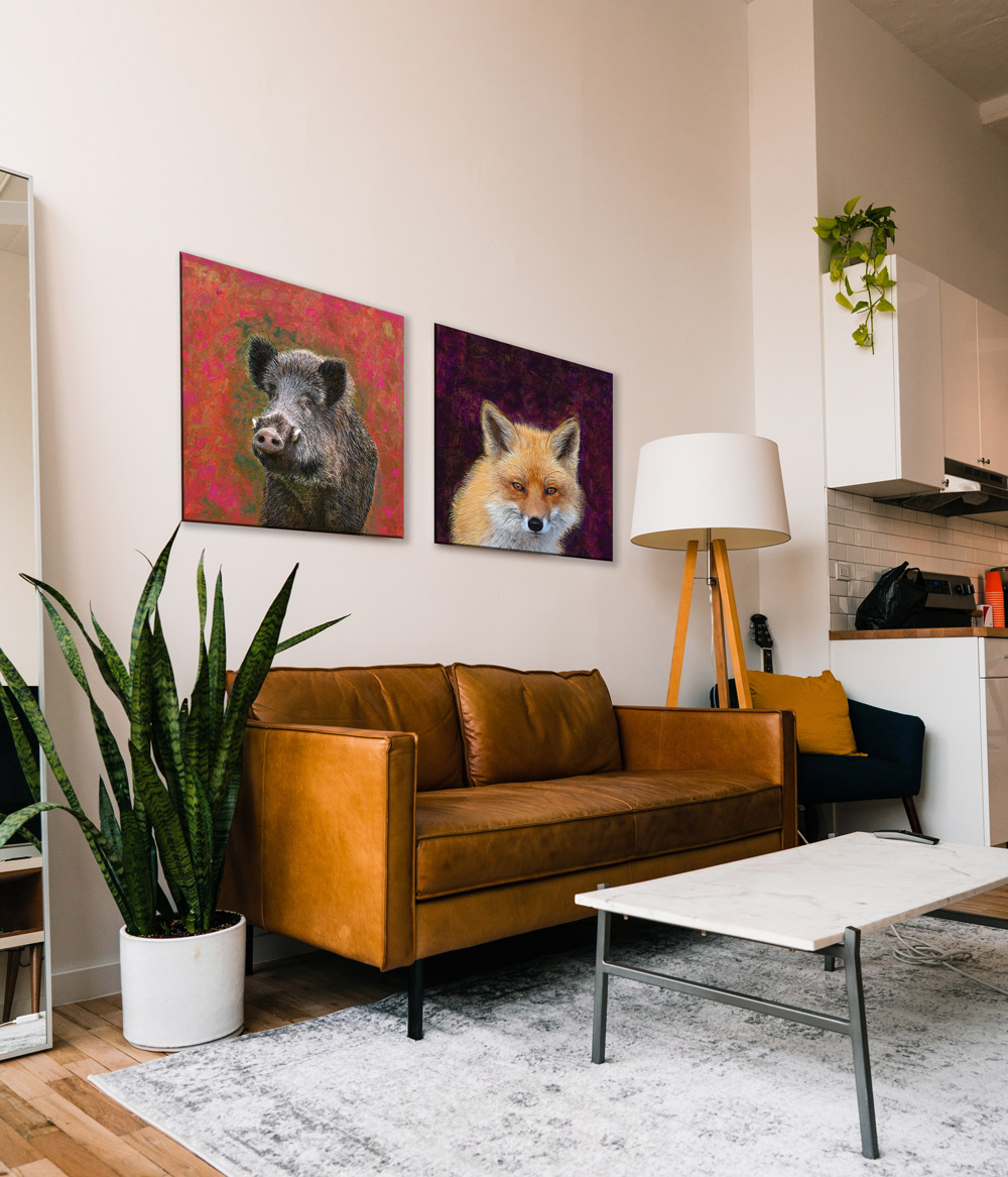 Der Kunstdruck "Fuchs" ist auf hochwertig glänzender Künstler-Baumwoll-Leinwand gedruckt. Diese ist unempfindlich gegen Berührungen und wasserabweisend.