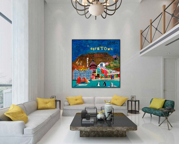 Bei akutem Fernweh nach Kapstadt hilft diese Collage. Denn er holt die bunte Faszination dieser südafrikanischen Stadt direkt in Ihr Wohnzimmer! Auch als Geschenkidee für Südafrika-Fans und Kunstfreunde eignet er sich ideal.