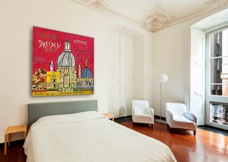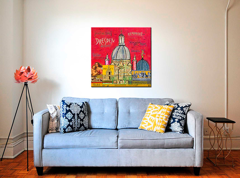 - Das Leinwandbild Dresden kann ohne zusätzlichen Rahmen direkt aufgehängt werden. Es ist auf einem nahezu verzugsfreien Galerie-Holzkeilrahmen gespannt und rückseitig geklammert.