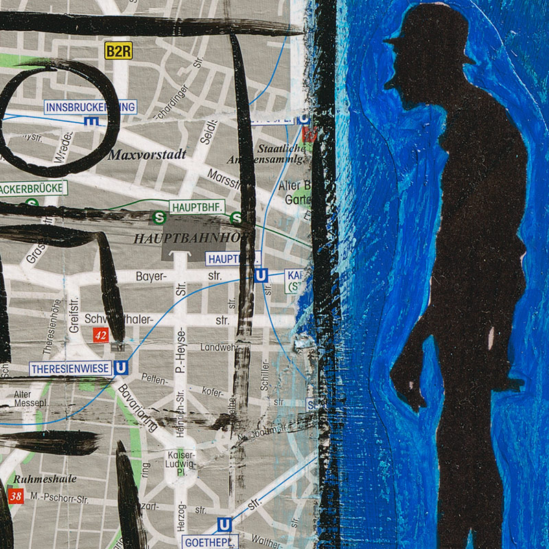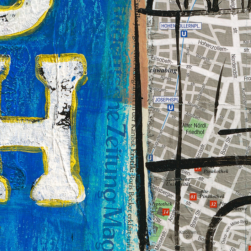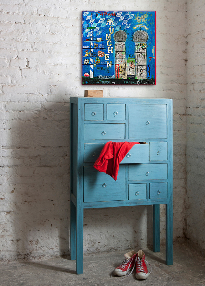 Die Seitenränder des Kunstdrucks München sind schwarz bedruckt. Das sorgt für einen schönen Kontrast zwischen Wand und Bild.