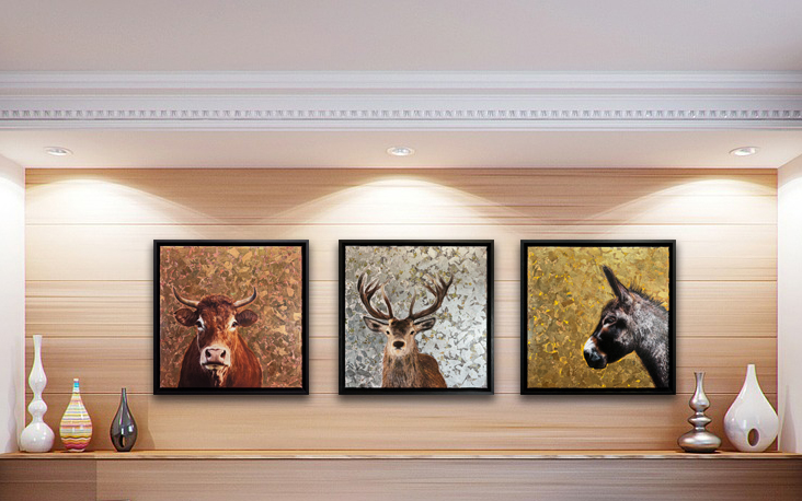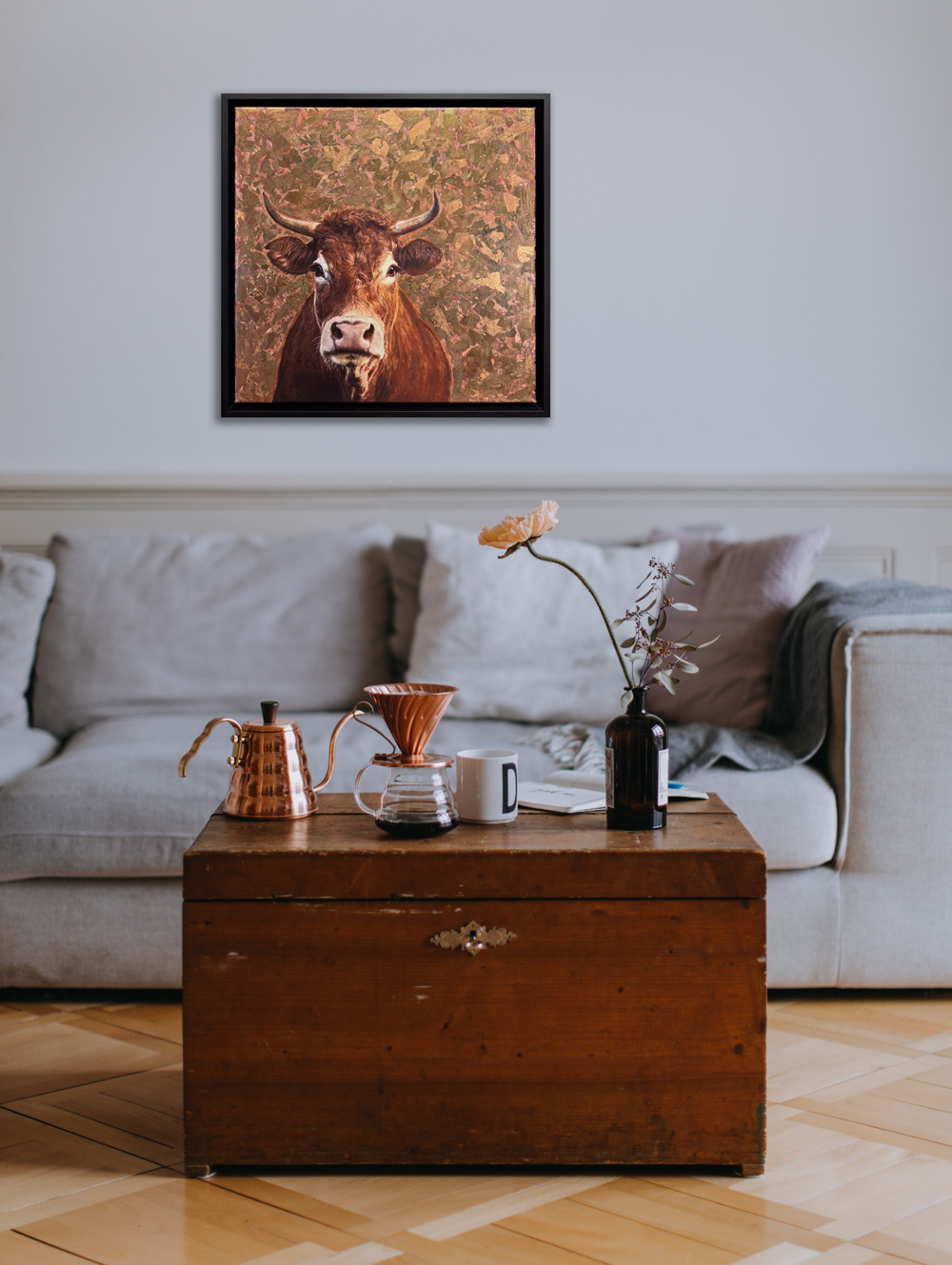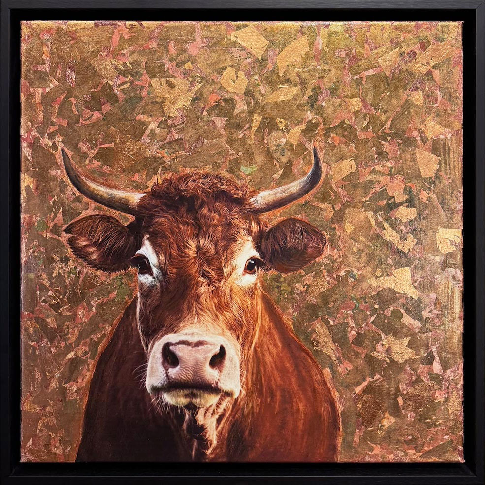 ist in limitierter Auflage von 50 St. in der Größe 60x60 erhältllich. Es handelt sich hierbei um einen Leinwanddruck der auf eine hochwertige glänzende Künstlerbaumwollleinwand mit lichtechter Pigmenttinte gedruckt (UV-beständig) ist, der auf einen nahezu verzugsfreien Galerie-Keilrahmen mit einer Tiefe von 3 cm aufgezogen ist. Zusätzlich wurde er per Hand mit mehreren Schichten Blattmetall überarbeitet und versiegelt. Somit mutet das Werk optisch wie haptisch fast wie das Original an. Das Spiel von Licht und Schatten auf Metall sorgt für einen einzigartigen Glanz, der je nach Lichteinfall und Betrachtungsfläche unterschiedlich wirkt. Dadurch entsteht eine lebendige und dynamische Oberfläche, die jede Bewegung im Raum reflektiert und so zu einem faszinierendem Blickfang wird. Durch die Veredelung erwerben Sie somit auch ein Unikat.