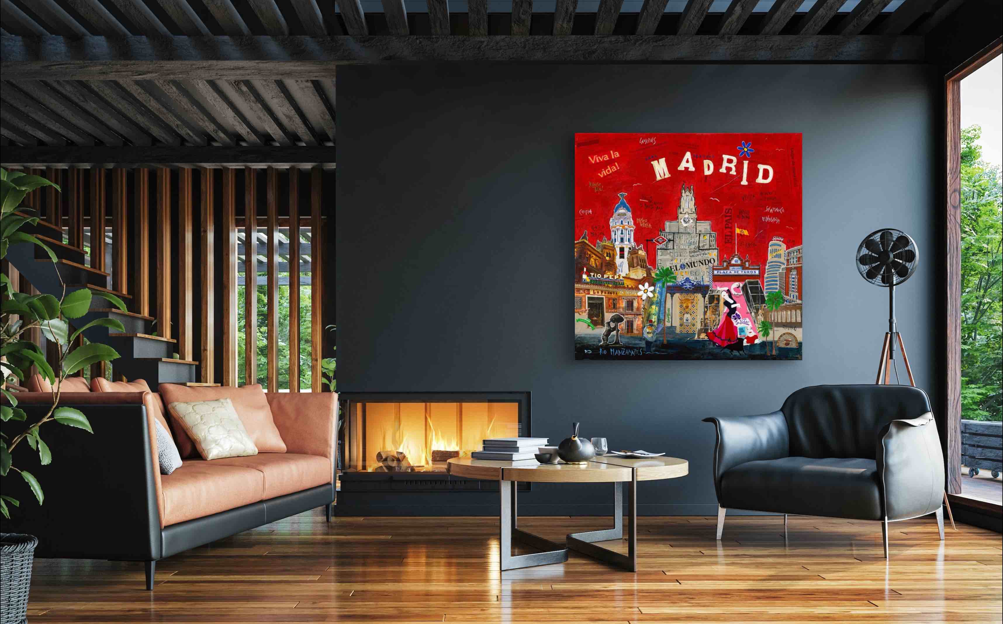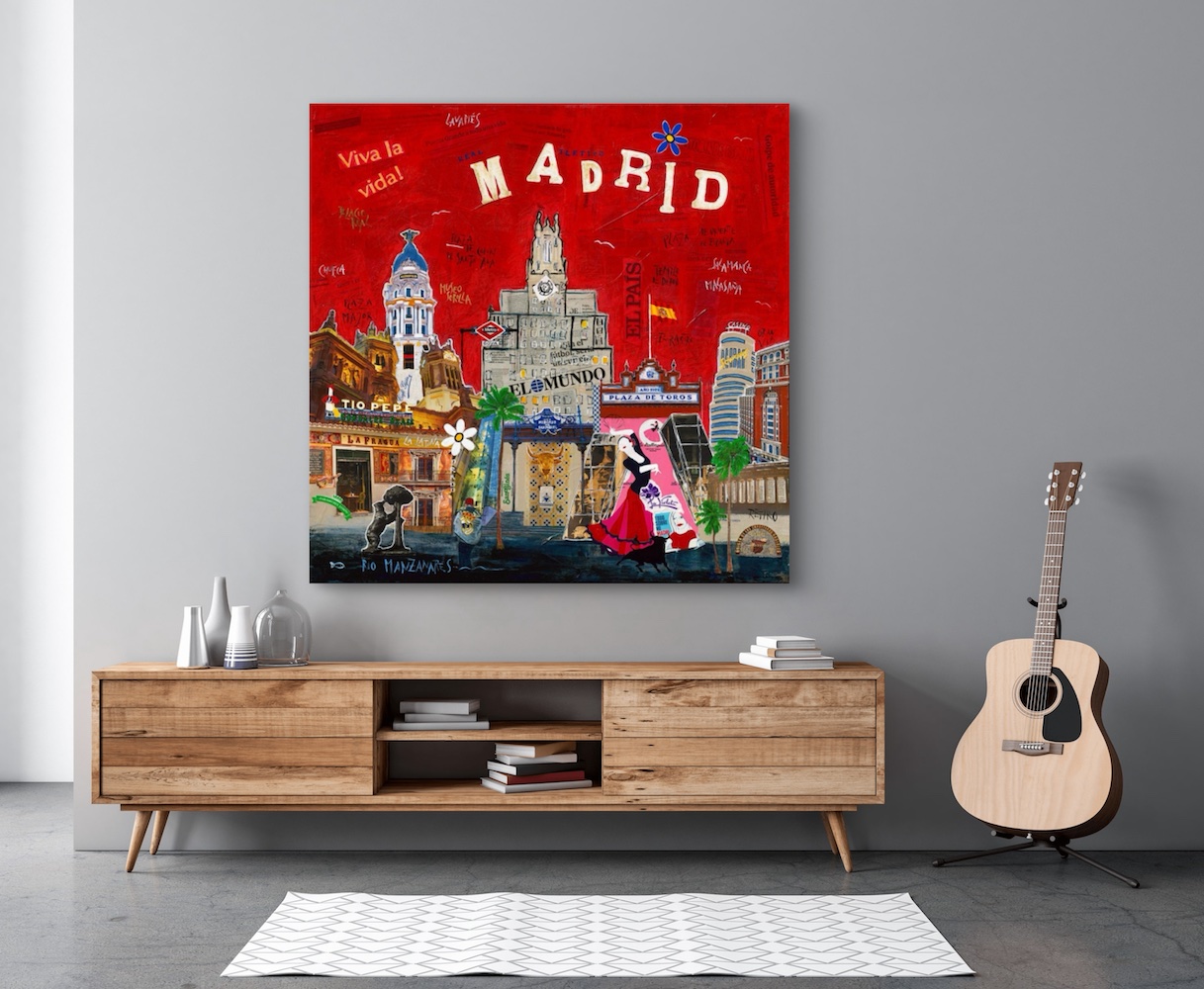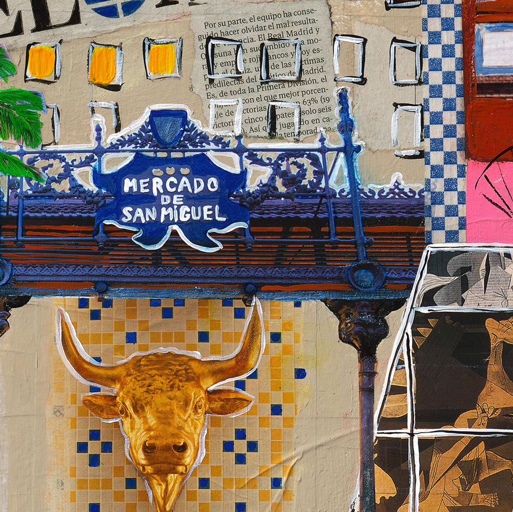 Original-Collage* "Madrid" in Mischtechnik / Acrylfarbe / Pastellkreide auf Künstler-Leinwand