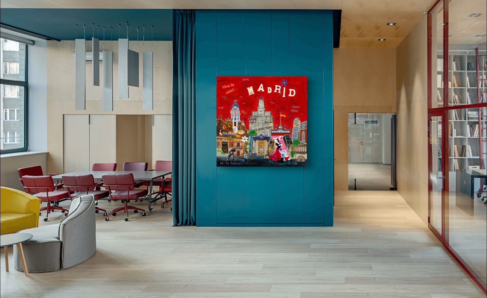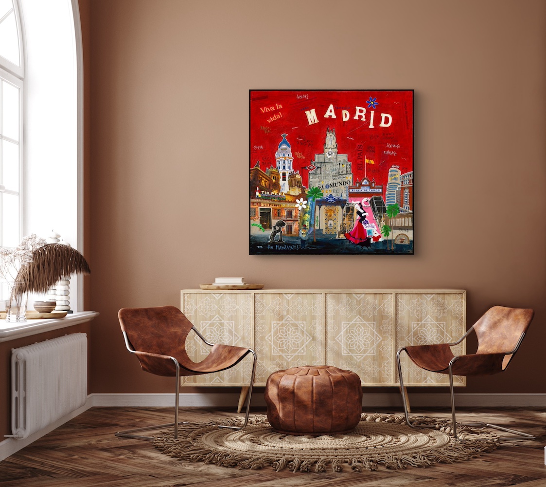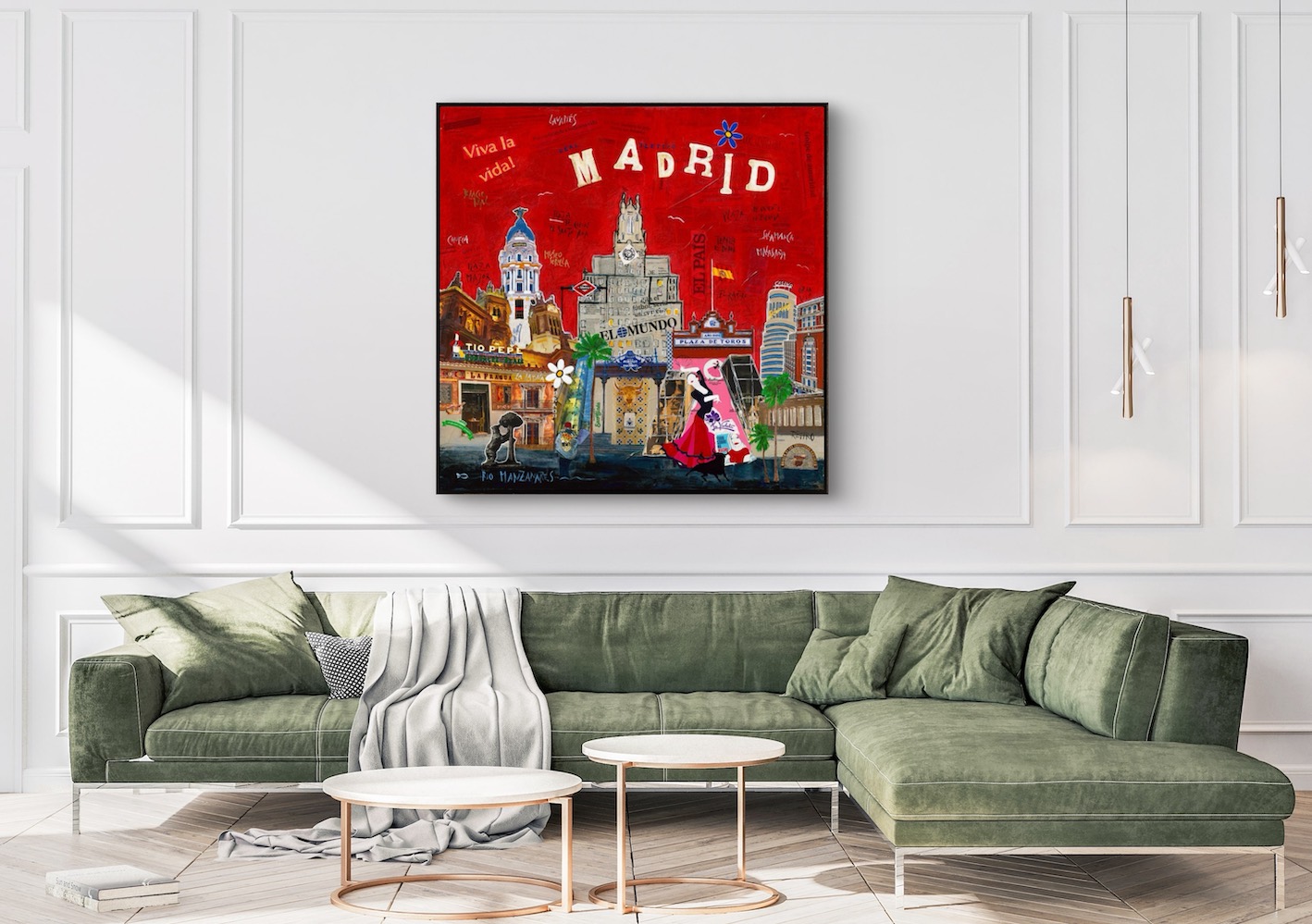 Original-Collage* "Madrid" in Mischtechnik / Acrylfarbe / Pastellkreide auf Künstler-Leinwand